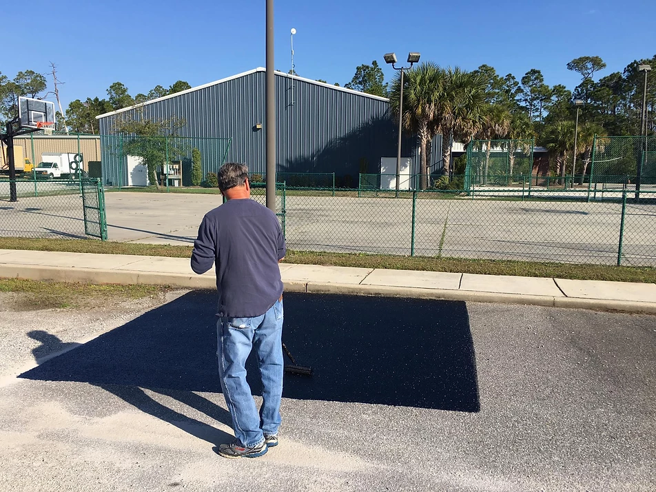“Finished with the job. We met a contractor that wanted us to apply a sample for his church parking lot. He is also wanted information on becoming an approved applicator in our network working in Orange Beach, Alabama servicing resorts and condominiums along the coast. Also, we got to meet and go out to dinner last night with Lee Stephens who is a Sergeant Major in the Navy retiring in six months, who is also interested in becoming a licensed applicator in our network offering services in Pensacola, Florida.”