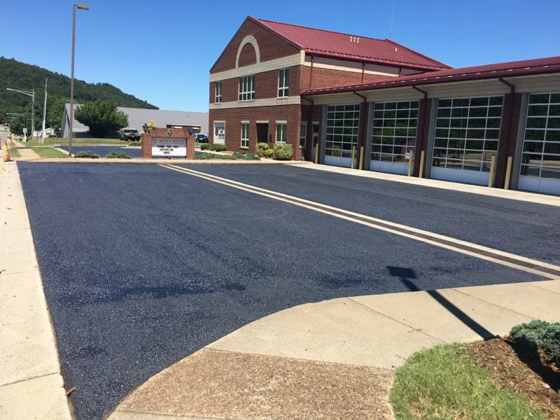 This asphalt rejuvenation project turned out great. It was started at 8 AM and each lane closed one at a time with no traffic for only one hour, opening up the lane repeating the process. The job completed 12:30 PM. We applied rejuvenator to Town of Rocky Mount and the City Building….